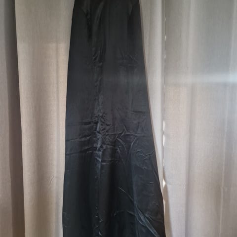 Selger en nydelig kjole i svart sateng - kun brukt én gang. Kjolen er klassisk og passer til de fleste anledninger.