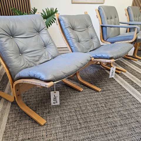 Torshov Siesta selger et utvalg av Siesta, Falcon og Luna lenestoler. Stolene selges med både gammelt og nytt skinn eller i nyomtrukket møbelstoff fra Gudbrandsdalen Uldvarefabrik og Kvadrat (svært høy kvalitet).