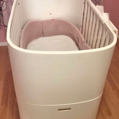Når babyen har blitt større kan sengebunnen senkes og man kan ha montert stengsel foran og bak om ønskelig.