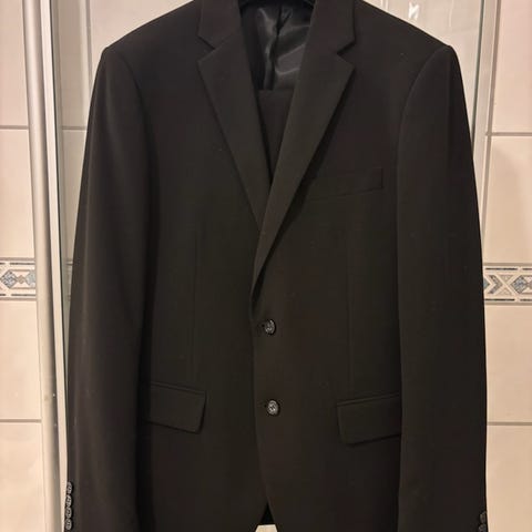 Selger en svart dress med striper fra Batistini i størrelse 33/30 (tilsvarer en large).