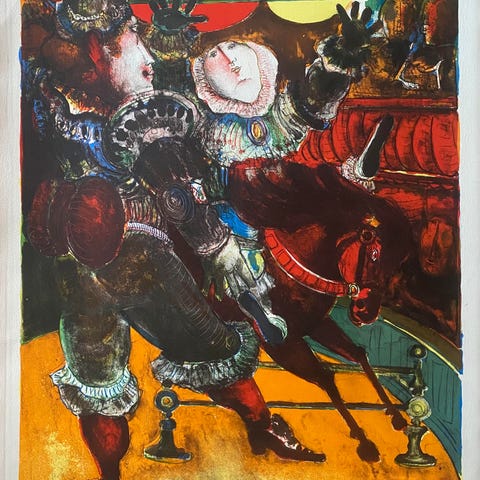 Litografi av den spanske kunstneren Miguel Rasero (født 1955). Format: Høyde 68 cm, bredde 50 cm. Nummerert og signert.