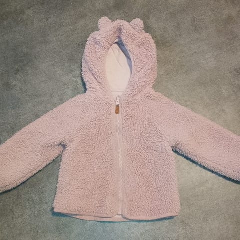 Newbie teddyjakke str 80. Brukt av ett barn. Litt misfarging i kanten ved glidelås . Se bilde,