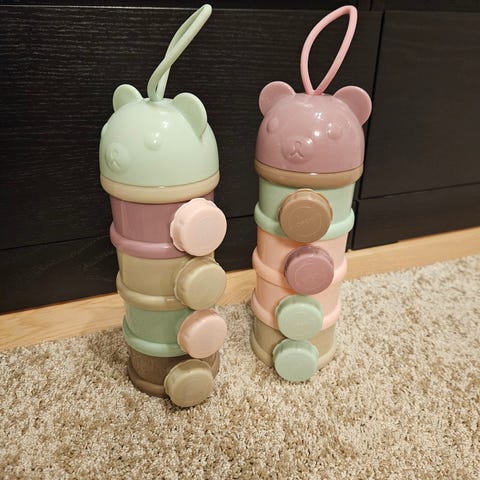 Mam og en bambino melkepulver beholder. Funker som de skal og veldig kjekke, 50 kr pr stk