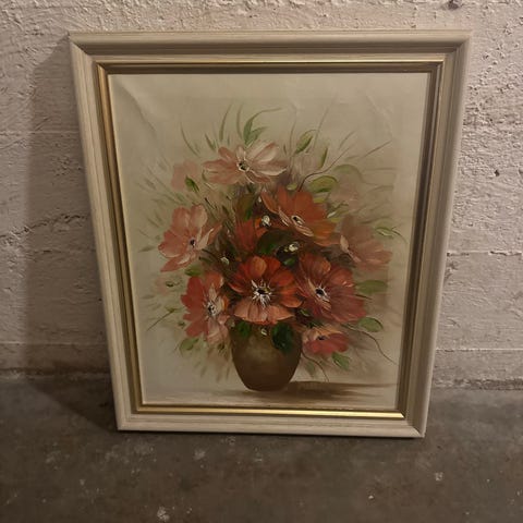 Stil: Stilen ser ut til å være figurativ, men med en løsere, muligens litt impressionistisk eller ekspresjonistisk, penselføring. Bakgrunnen er nøytral, sannsynligvis grå eller brunlig, som lar blomstene fremheves.