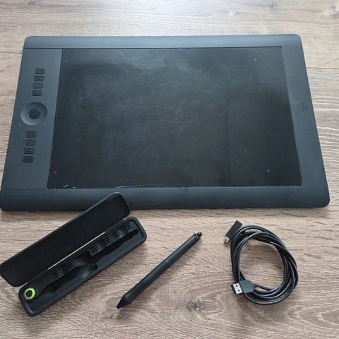 Selger et pent brukt Wacom Intuos 3 grafikkbrett, modell PTZ-630. Dette var en gang Wacoms toppmodell for profesjonelle kreative, og er fortsatt et solid verktøy for digital kunst, design og bilderedigering. Perfekt for studenter, hobbyister eller de som ønsker å prøve seg på digital tegning/maling.