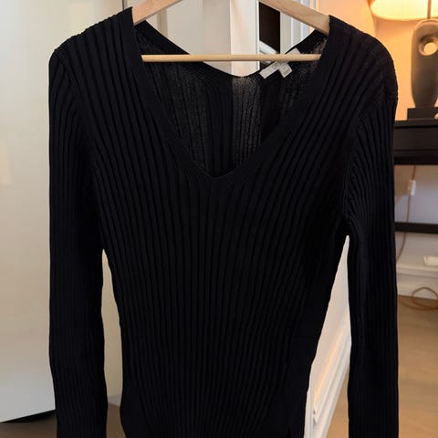 Langermet topp fra H&M L.O.G.G. i str. L. Ribbestrikket og med en videre v-hals utringing. Pent brukt.