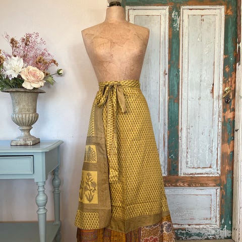 Nydelig langt omslagsskjørt i silkeblanding. Har mange hull så kan justeres i størrelse fra ca xs til xl.🍉 #sommer #festival #fargerik #skjørt #omslag #bohem #hippie #indisk #cottagecore #unik #spesiell #silke #vintage #retro #cos