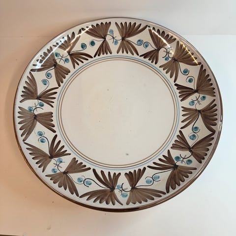 Stort keramikk fat fra Gann Graveren, håndmalt Norsk design fra 50 - 60 tallet