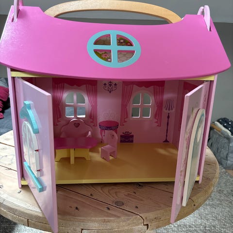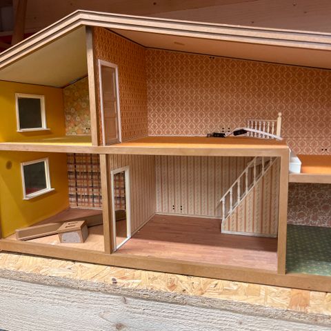 Fint dukkehus. Møbler medfølger som avbildet. Se også annonse med barbiedukker og klær.