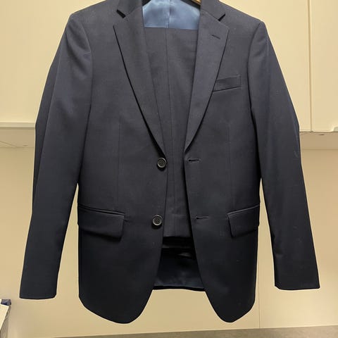 Ingen slitasjer, men har flyttet på knappen i buksa da den ble trang, kan brukes slik eller flyttes tilbake.