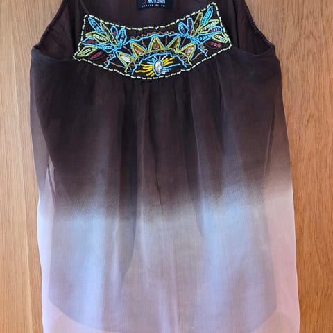Glitterstoff og pene detaljer på skuldrene. God elastikk i stoffet.
