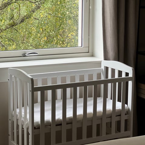 Fin hvit IKEA sprinkelseng for små barn. Madrassen er 10cm tykk.