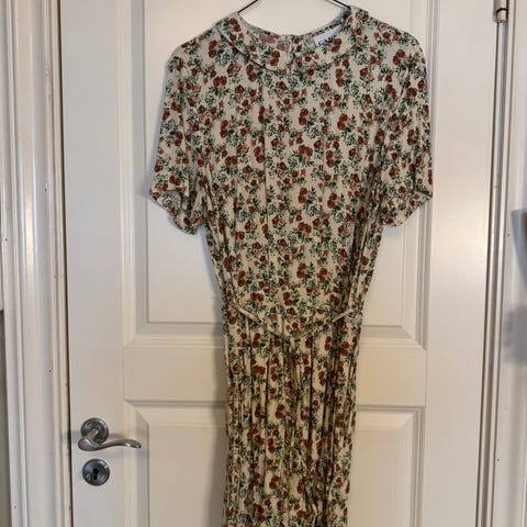Ganni skjortekjole i printet creme. Litt stor på størrelsen, passer 36-38.