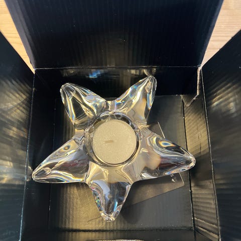 Sølvfarget lysskål til telys. Samlerobjekt designet av Ole Korzau til 2007 kolleksjonen. Utgått/ikke lenger i salg, og sjelden til salgs på bruktmarkedet. Mangler dessverre ytteresken. Noe patina og bruksmerker (se bilder), og selges derfor rimelig. Har ytterligere en til salgs om det er ønskelig med flere. Se også mine andre annonser i denne serien.