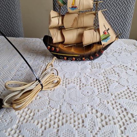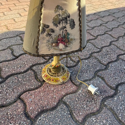 Utskåret lampefot med ulike motiv på hver side. Utrolig kul med stor pære! Sokkel E27.