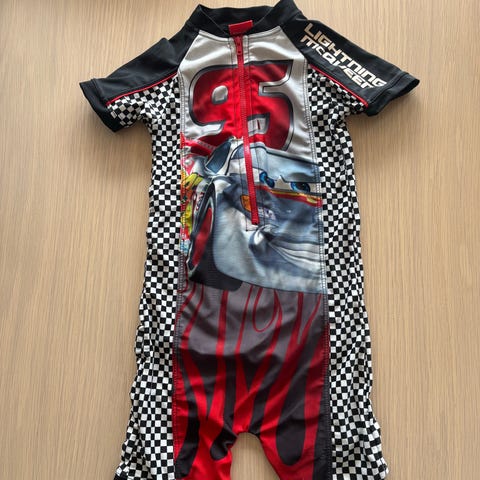 Lynet Mc Queen UV drakt med tilhørende solhatt, str. 92/98. Se bilder. Må hentes