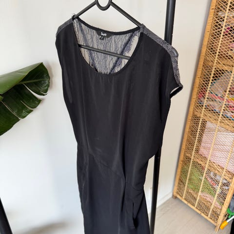 Svart kjole , str M. Elastisk. Skuderputer, som kan tas av(borrelås).