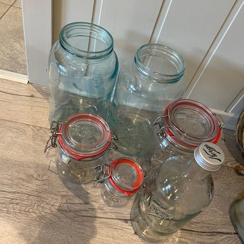 33 små glasskrukker med lokk