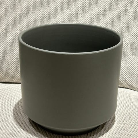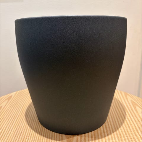 Strøken matt sort potte fra Kremmerhuset selges. 13cm i høyden og 12,5 cm diameter.