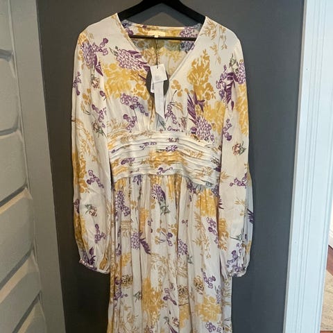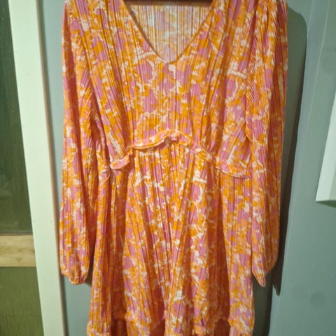 Ubrukt plissert kjole fra H&M. Kjempefin kjole med v-utrigning og ballongermer med knyting.