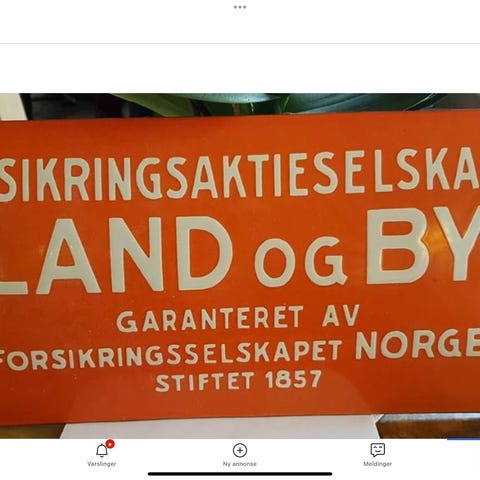 Orginalt tilnærmet strøkent emaljeskilt fra 1950 tallet. Størrelse 90 x 90 cm, veier 9 kg
