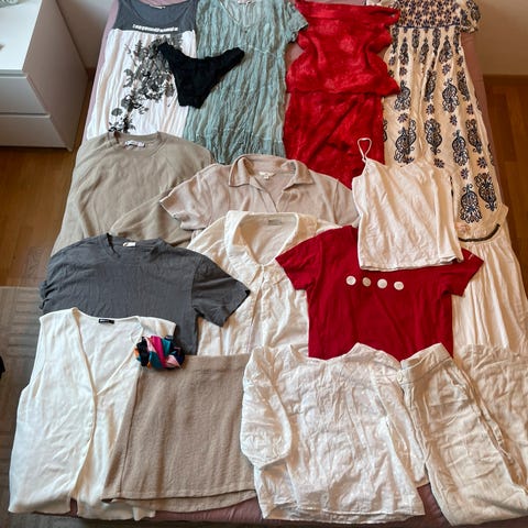 Jeg selger unna litt klær og har derfor laget flere klespakker. Denne inneholder kjoler, tilsvarende størrelse L/XL.