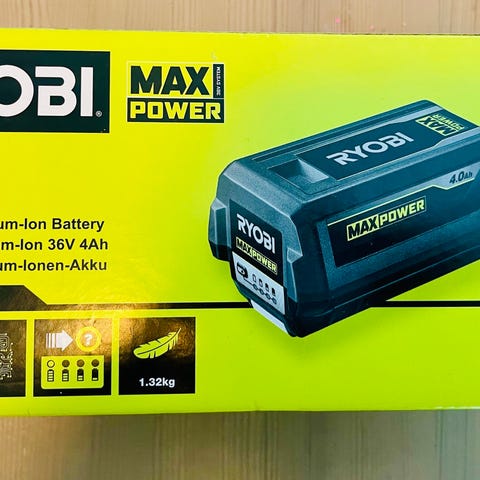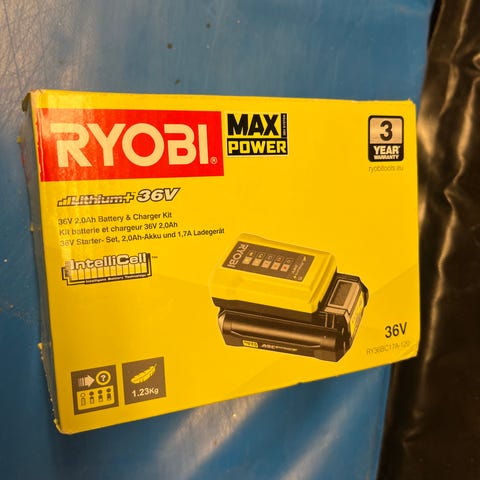 RYOBI 36V MAX POWER 4Ah batteri + 5A hurtilader (lader 4Ah batteri på 50 minutter)