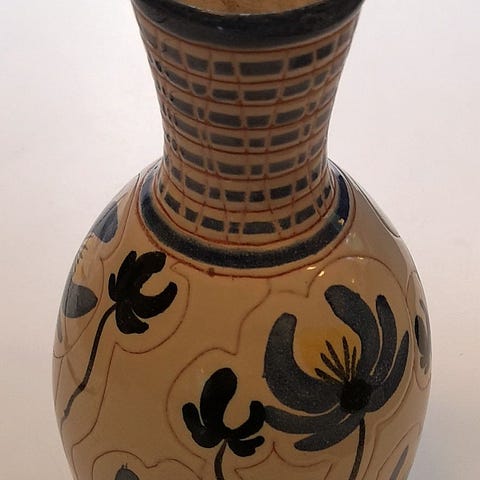Jeg antar dette er keramikk- nydelig stort, rødt fat. Ser helt strøkent ut. Merket under, klarer ikke å tyde..