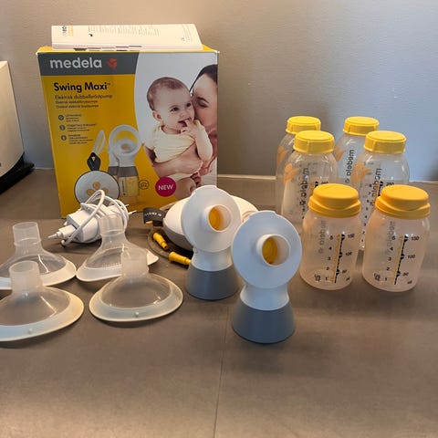 Fungerer veldig bra, men er lite brukt da jeg hovedsaklig ammet. Selve pumpen er så godt som ny. Plastskålene og noen av flaskene har noen smeltemerker, da de ble sterilisert i kasserolle - men det har ingen praktisk betydning.