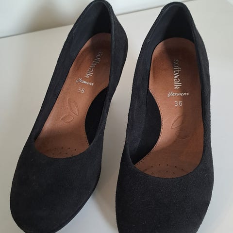 Svarte pumps i størrelse 36, med ortopediske myke fotsåler. Kan brukes til hverdagen eller ved spesielle anledninger