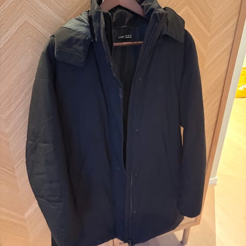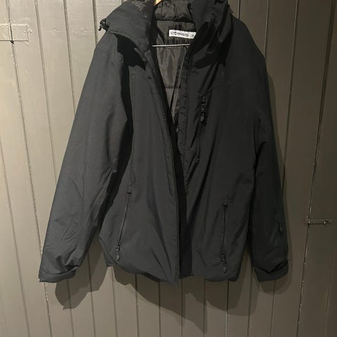 Vindtett og vannavstøtende. Kjempefin jakke. Står xs i den, men den passer medium! Sort, selv om den ser grå ut på bildet.