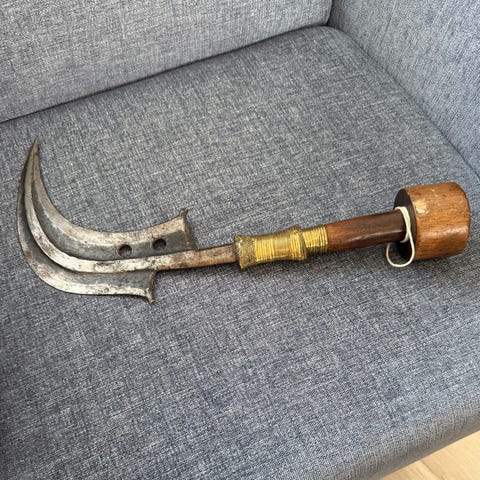 Fint eksemplar av eldre type laukniv , mål L: 33,5 CM. Vekt: 0,5kg. ( meget skarp ) Betaling med vipps. KAN SENDES ! ( ikke med fiks ferdig )