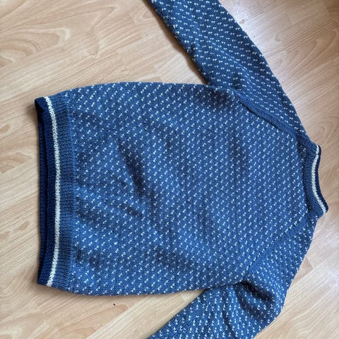 Håndstrikket genser til jente / kragegenser. Selges kr 250. Strikket i ull-bomull. Fin til sommeren 🤩