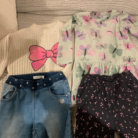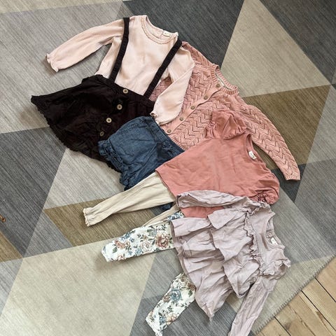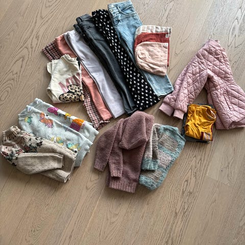 Noe nærmest ubrukt, annet med mindre anmerkninger . Rosa genser er ubrukt og i ull.