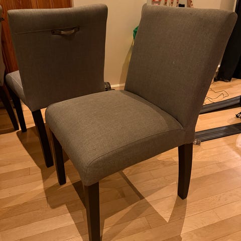 Pent brukte spisestuestoler.
