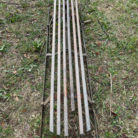 Dump huske/vippe i jern, med sitteplater av tre.