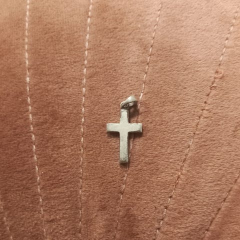 Anheng med kors belagt med blanke steiner. Antar det er zirkonia.