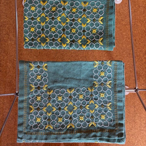 Vintage. Håndarbeid. Sett med liten løper og 2 små brikker