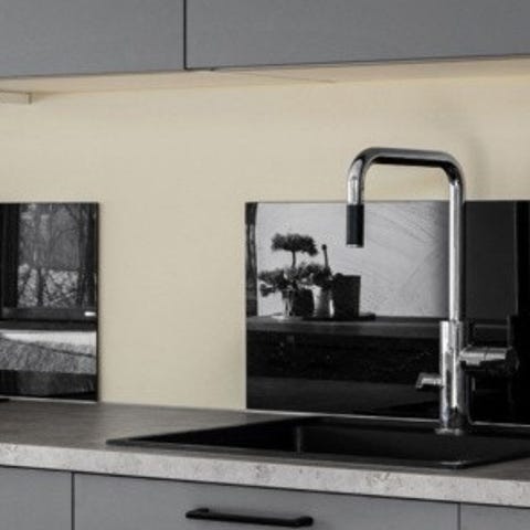 Herdet glassplate til kjøkkenet som Kan brukes ved komfyrovn for å beskytte vegen. Product er fra Norskeglassprodukter.