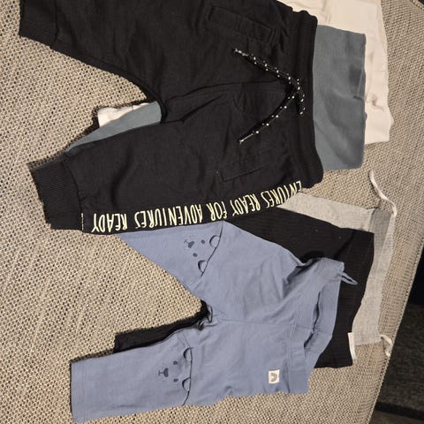6 stk bukser selges for 150kr. Noe er i str 62 og noen i str 68.
