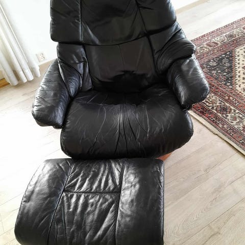 Pent brukt lenestol/stressless, litt mer brukt fotkrakk