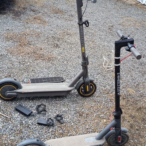 Sparkesykkelen har problemer med å lade. Den lager lyd når man putter den i laderen men ikke noe vises på display. Den kjører heller ikke. Bakhjulet er løst. Må også fylle på bremseveske på de hydrauliske bremsene. Sparkesykkelen er sperret med en toppfart på 20kmt. Ønsker helst ikke å sende. Sparkesykkelen har nøkler som kan brukes til å starte sparkesykkelen, skru på alarm system, og evt lyd til å finne igjen sparkesykkelen. Bakhjulet er nytt