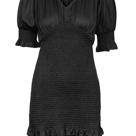 Kjolen er brukt et par ganger, og fremstår i veldig god stand. Den har ingen hull, flekker eller slitasje. Damen på bildet er 162 cm høy, veier 60 kg, og bruker normalt str S- M i klær.. kjolen hun har på seg er str S.