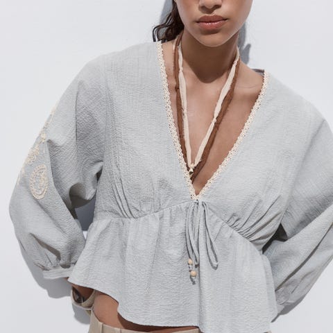 Bluse sydd av brodert duk