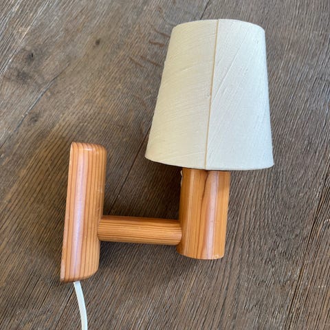 To flotte vintage vegglamper i lakkert furu, har skjermer med stilige tredetaljer. Lampene er i meget god vintage stand, ingen skader og virker som dem skal.