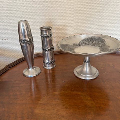 Vakker skål/fat/bolle i tinn.