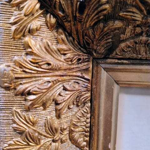 Nydelig ramme. En lite skade oppe til venstre. Litt gullmaling vil hjelpe.