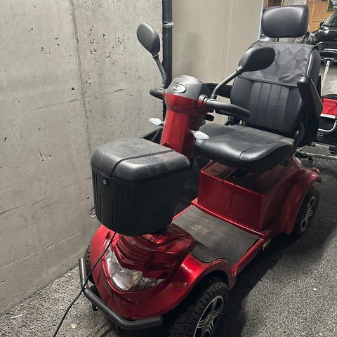 Selger en spesialtilpasset garasje for handicap scooter og gåhjelpemidler. Perfekt for trygg og enkel oppbevaring – både hjemme og på institusjon.