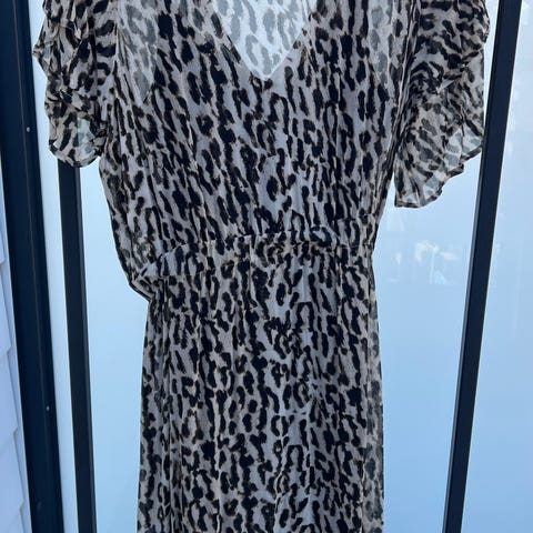 Fin omslagskjole i dyreprint.