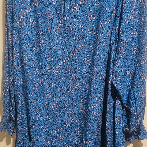Nydelig blå kjole I viskose. Str L/XL. A - fasong. Litt møster i.Som ny. Kan sendes